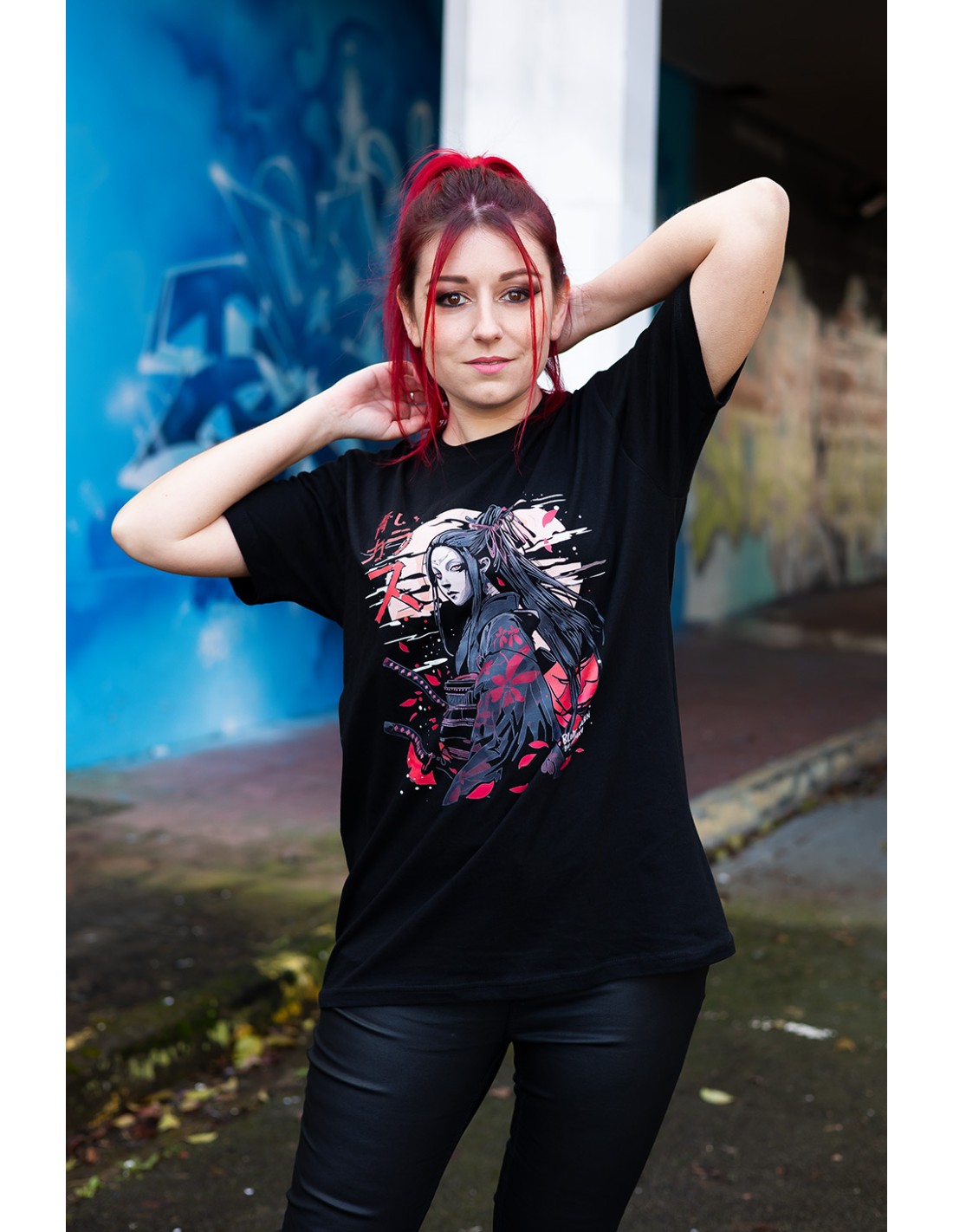 T-shirt homme Blue Raven By Anomaly orné d'une guerrière samouraï (Motif au format A3).