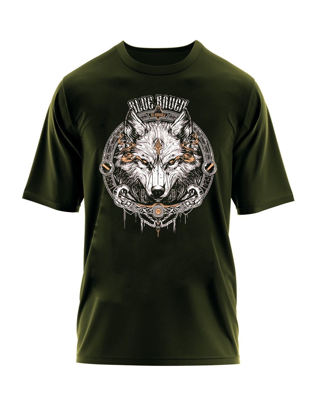 Vous allez adorer ce T-shirt homme vert kaki orné du loup Fenrir.